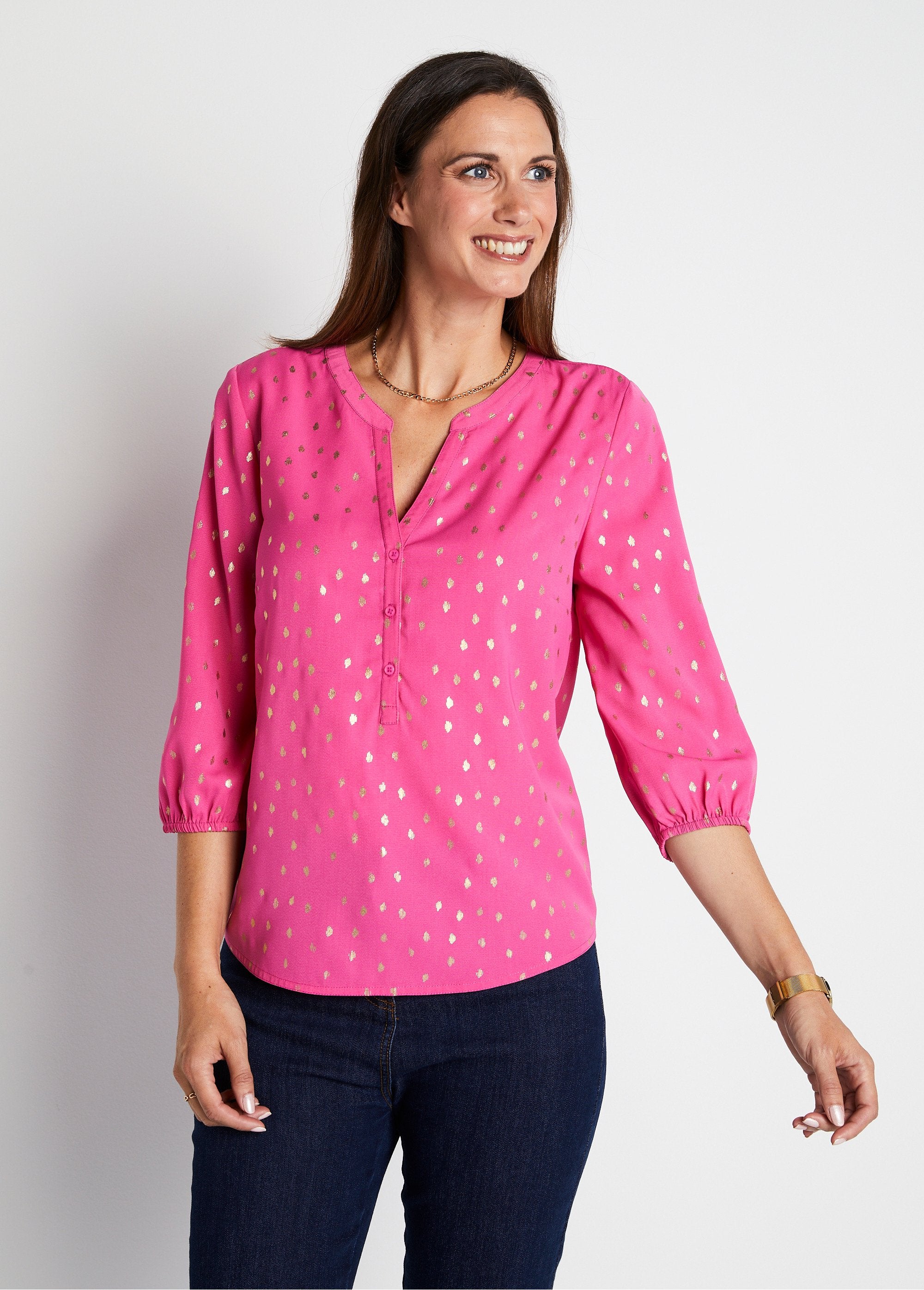 Túnica_larga_con_cuello_en_V_y_manga_3/4_Fucsia_FA1_slim Túnica_larga_con_cuello_en_V_y_manga_3/4_Fucsia_DO1_slim