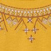 Esta camiseta luce un precioso bordado bajo el cuello redondo y en las costuras descentradas de los hombros. Tiene ribete al bies en el cuello y doble costura en el bajo y las mangas largas.