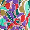 Túnica elástica con escote en pico y estampado floral.  Estampado morado y verde.